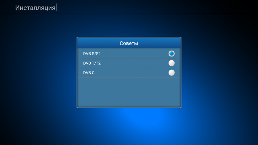 Посмотрим на возможности и настройки. Пункт инсталляция — необходим для поиска каналов и запускает первоначальную настройку.